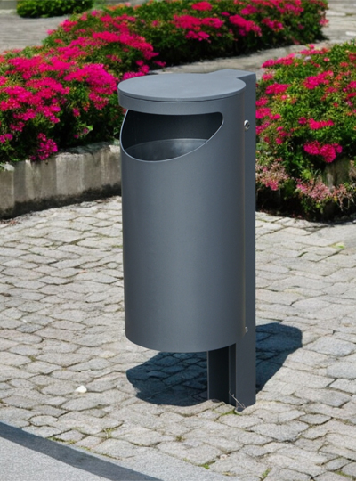Der Abfallbehälter A 20 gehört zu den robustesten Ausführungen im SIROLI-Sortiment. Mit einem geraden Deckel aus 8 mm Blech und einem abkippbaren Außenbehälter aus 3 mm Blech, Edelstahl 1.4301 bietet er Vandalismus maximalen Widerstand. Der Innenbehälter aus 1,5 mm Aluminiumblech und ca. 36 l Fassungsvermögen lässt sich leicht aus dem Außenbehälter entnehmen, da dieser nach der Entriegelung nach vorn kippt. Nach der Entleerung braucht der Außenbehälter nur in seine Ausgangsstellung zurückgedrückt werden, da eine federbelastete Klinke automatisch verriegelt. Die geraden Konturen des Abfallbehälters lassen ihn besonders schlicht erscheinen und mit moderner Architektur und Außengestaltungselementen (z. B. der SIROLI-Bank B 46) gut kombinieren.